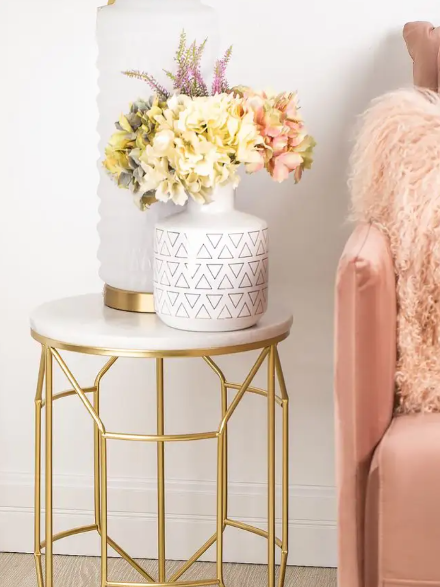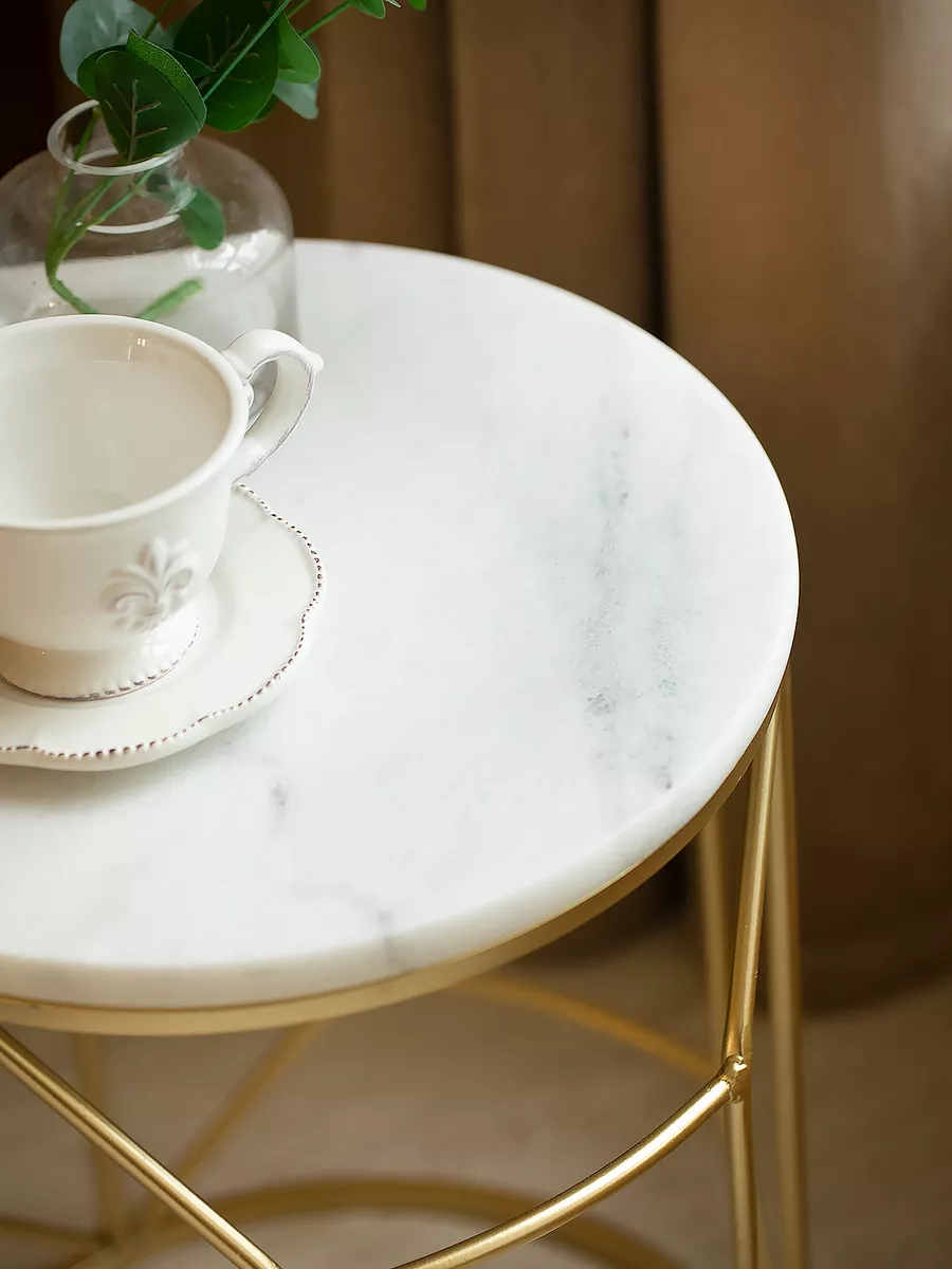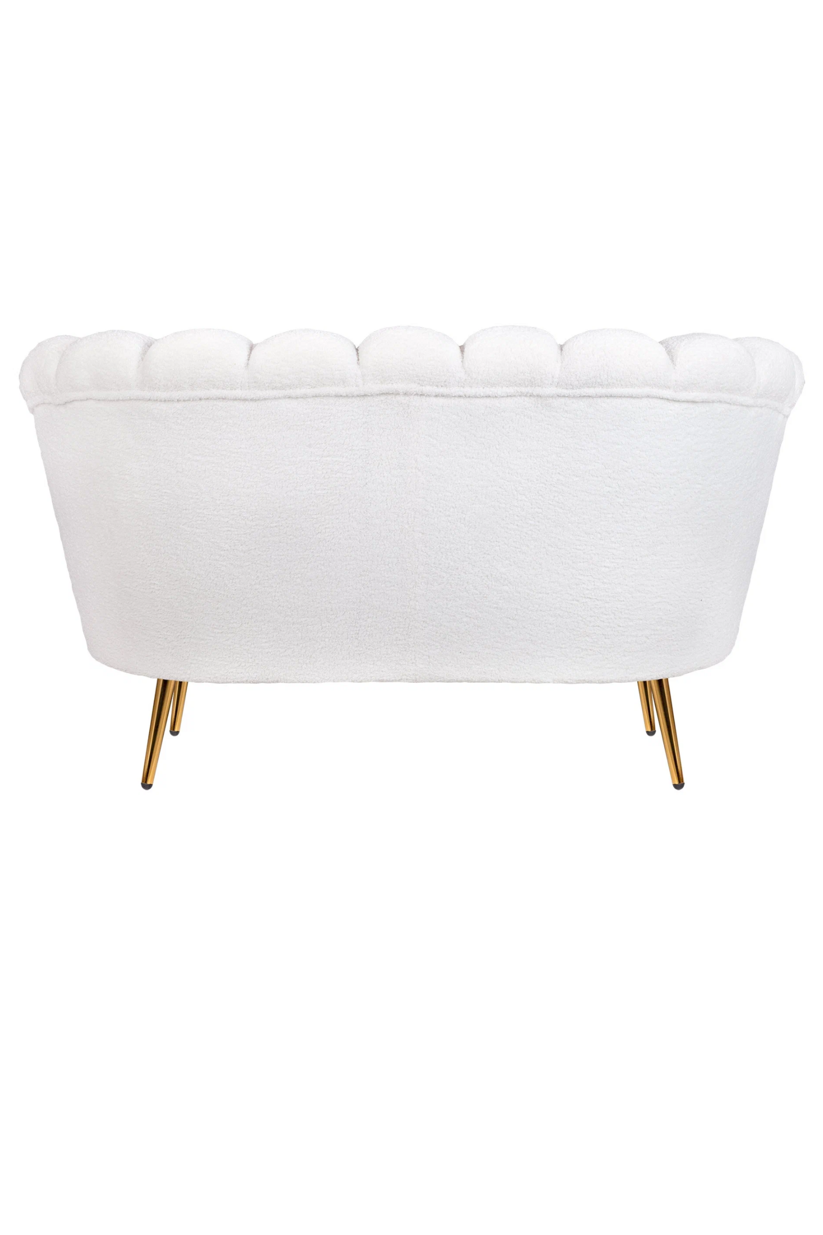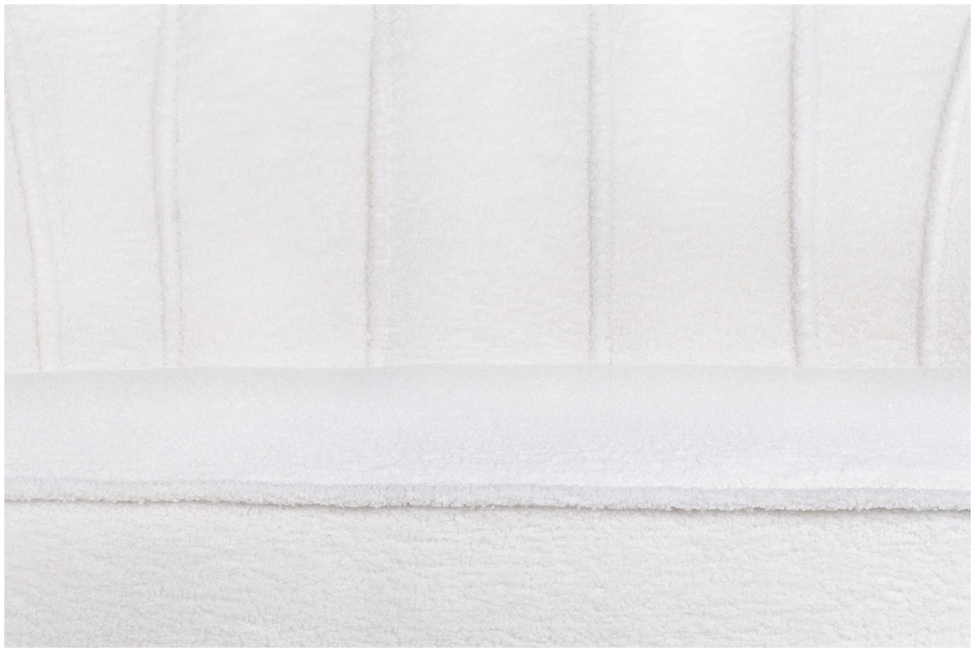 Кресло изготовлено на основе каркаса из натурального дерева и металла, что гарантирует его прочность и долговечность. Обивка выполнена из букле белого цвета, декорированного продольными стежками на внутренней стороне спинки.